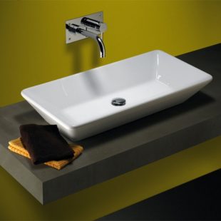 כיור שוקת בעל אפשרות של התקנה שקועה או מונחת.