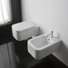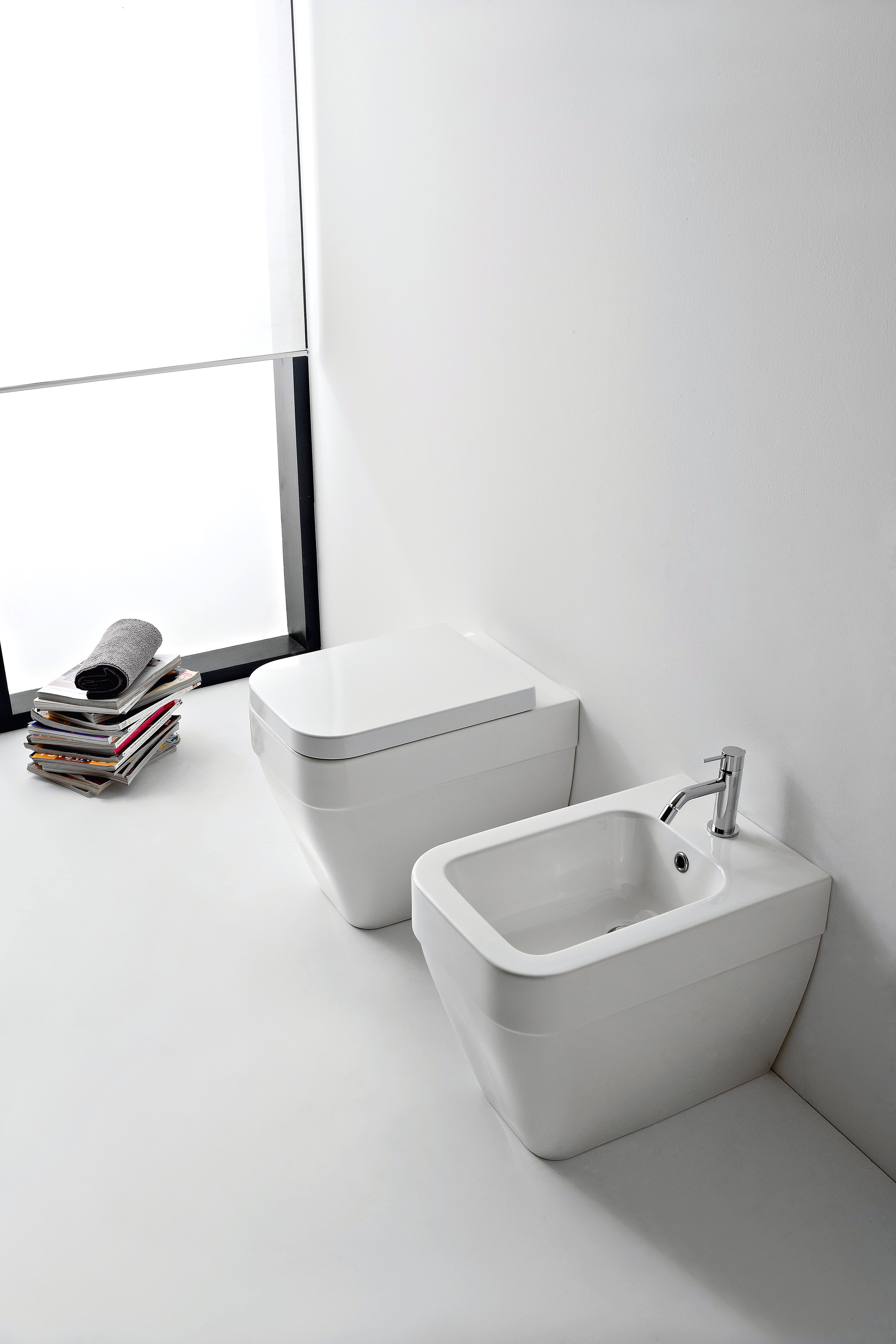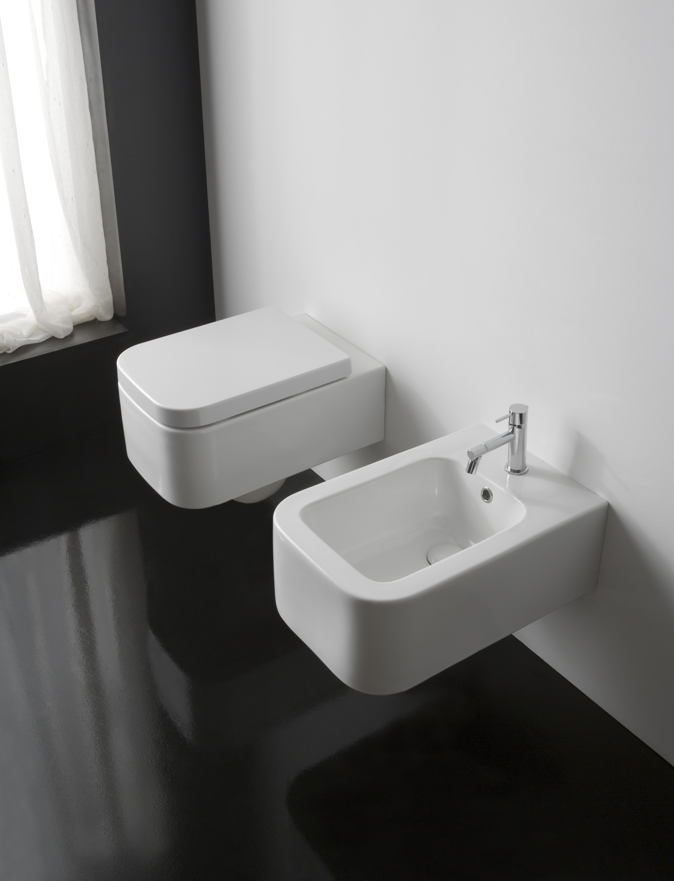 אסלה תלויה מרובעת ומושב הידראולי , עכשיו פרט ללבן גם בגימור חיצוני מוכסף שחור או מוזהב.