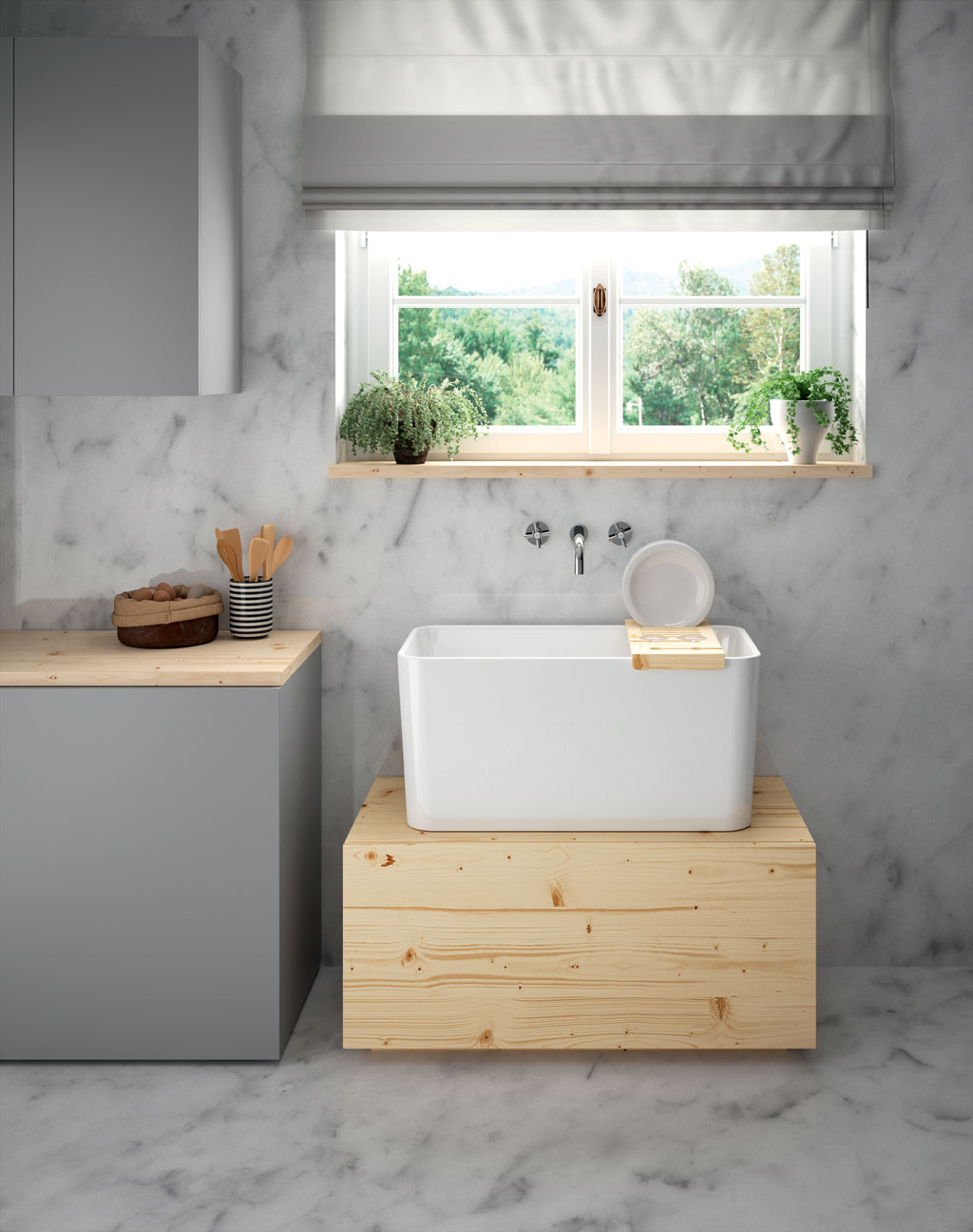 כיור דומיננטי, בעל נוכחות חזקה בחדר האמבטיה , מתאפיין בקו נקי.