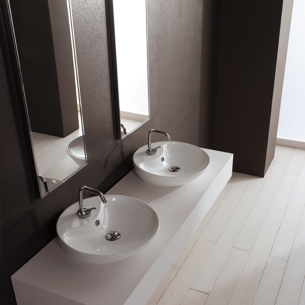 ועגול(קוטר 45) שניהם עם חור לברז. לכיורים עיצוב זורם, כפי שביקש להדגיש המעצב GIANNI CALISTI.