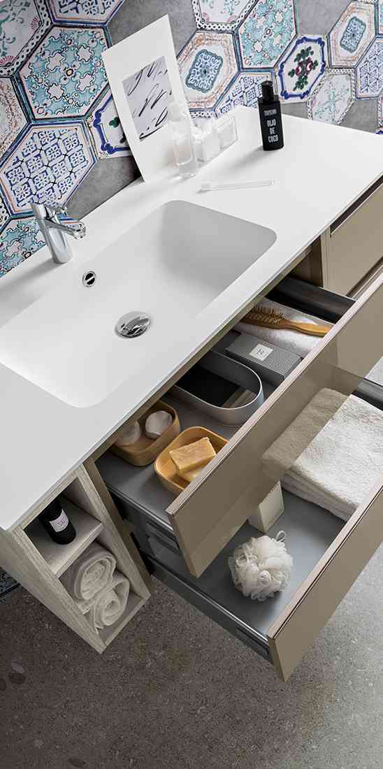 CERASA מציעV סדרה צעירה וזורמת של ארונות אמבטיה, בכל אורך ועם כל משטח שתבחרו. קולקצייה ענקית של צבעים וגימורים. מגירות בטריקה שקטה, תאורת מגירות , ומראות עם תאורה ומפיגי אדים. במילאנו 2025 השיקה CERASA את קולקציית HONEY, בסדרה צבעים חדשים ושילובים חדשניים של משטחים וחומרים.