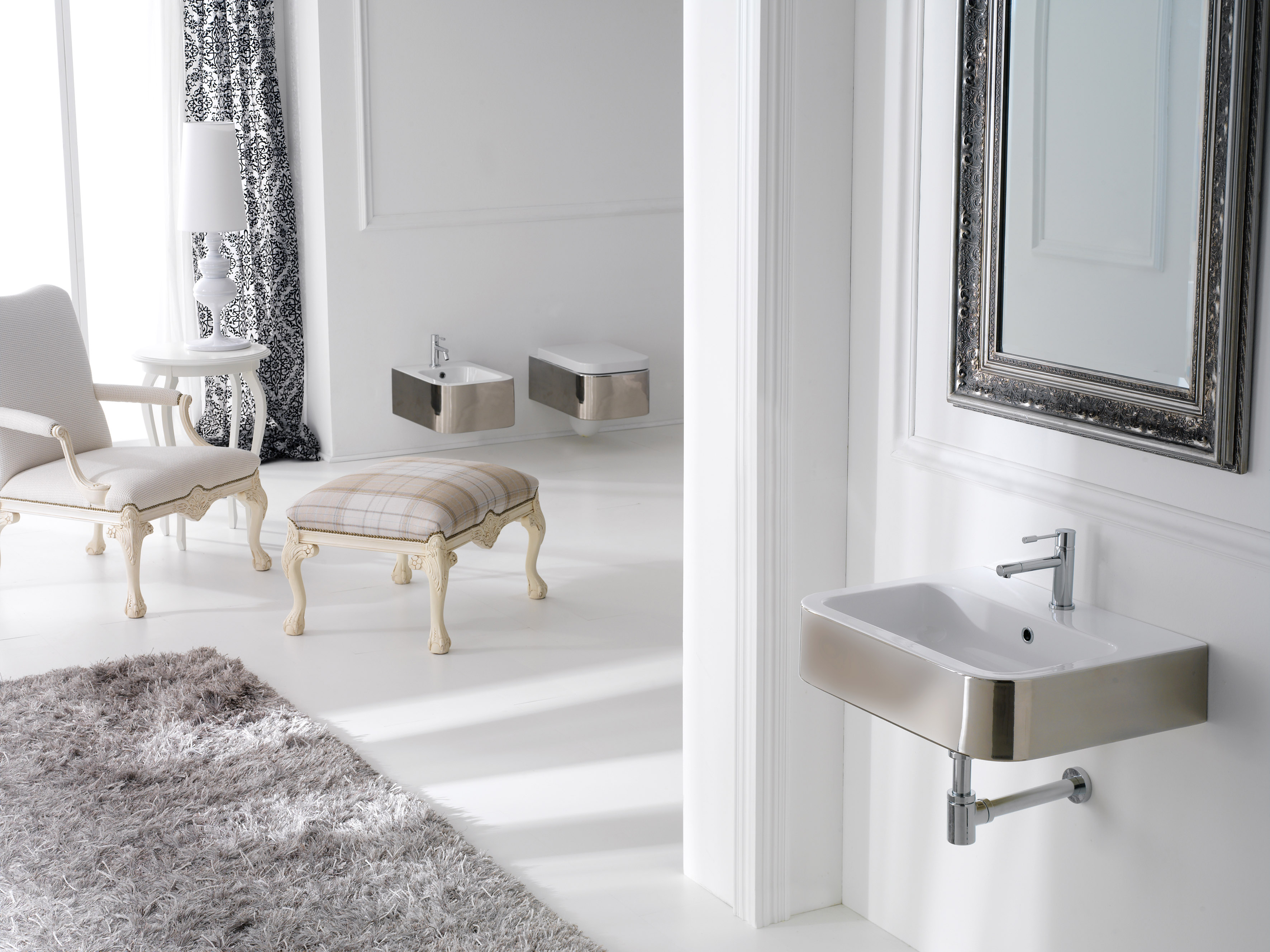 כיור מונח בגימור פלטיניוםכיור ואסלה בגימור כסוף