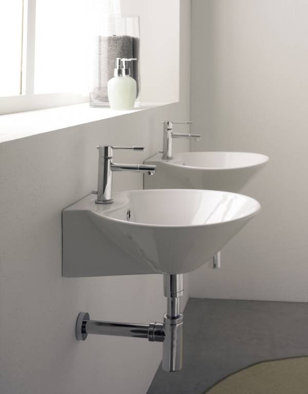 כיור מונח ללא חור לברז, או תלוי עם חור לברז.