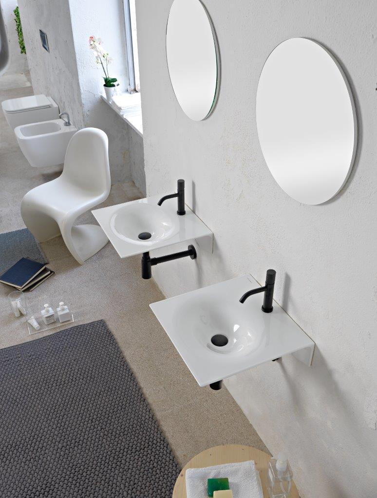 כיור חרס דק עם מתלה מגבות, במבחר צבעים וגימורים. עיצוב מדוייק ומעוטר פרסים